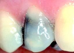 Verkleuring door een dode tand.